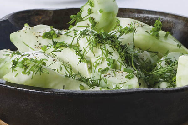 Am liebsten essen wir Schmorgurken aber als cremiges Rahmgemse mit frischem Dill. Mitdnsten mit Salz und Pfeffer wrzen. Gurken schlen und halbierenentkernen und wrfelnIn.